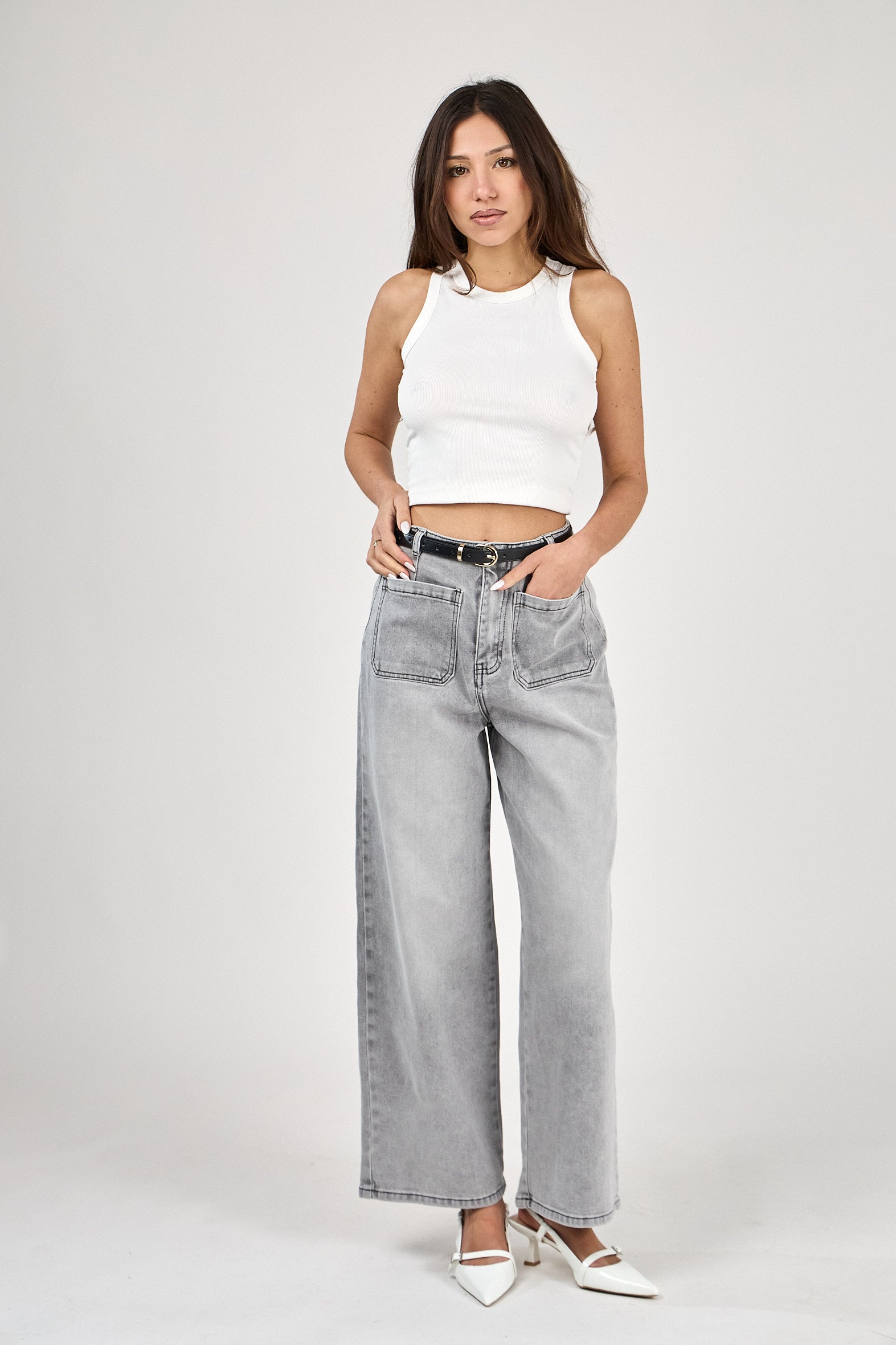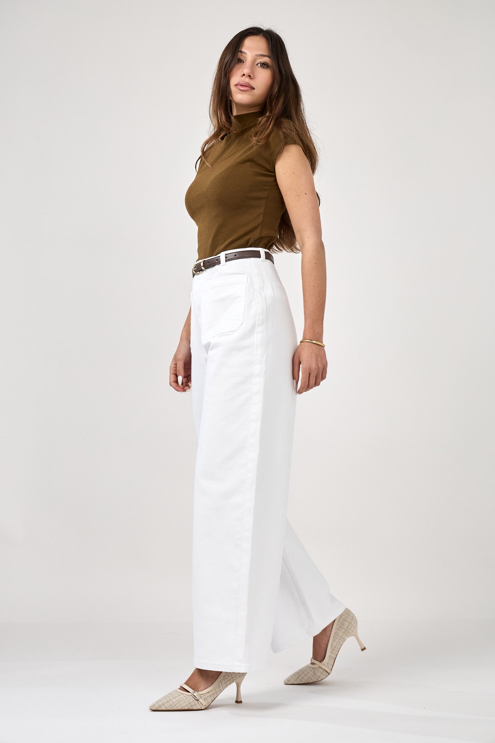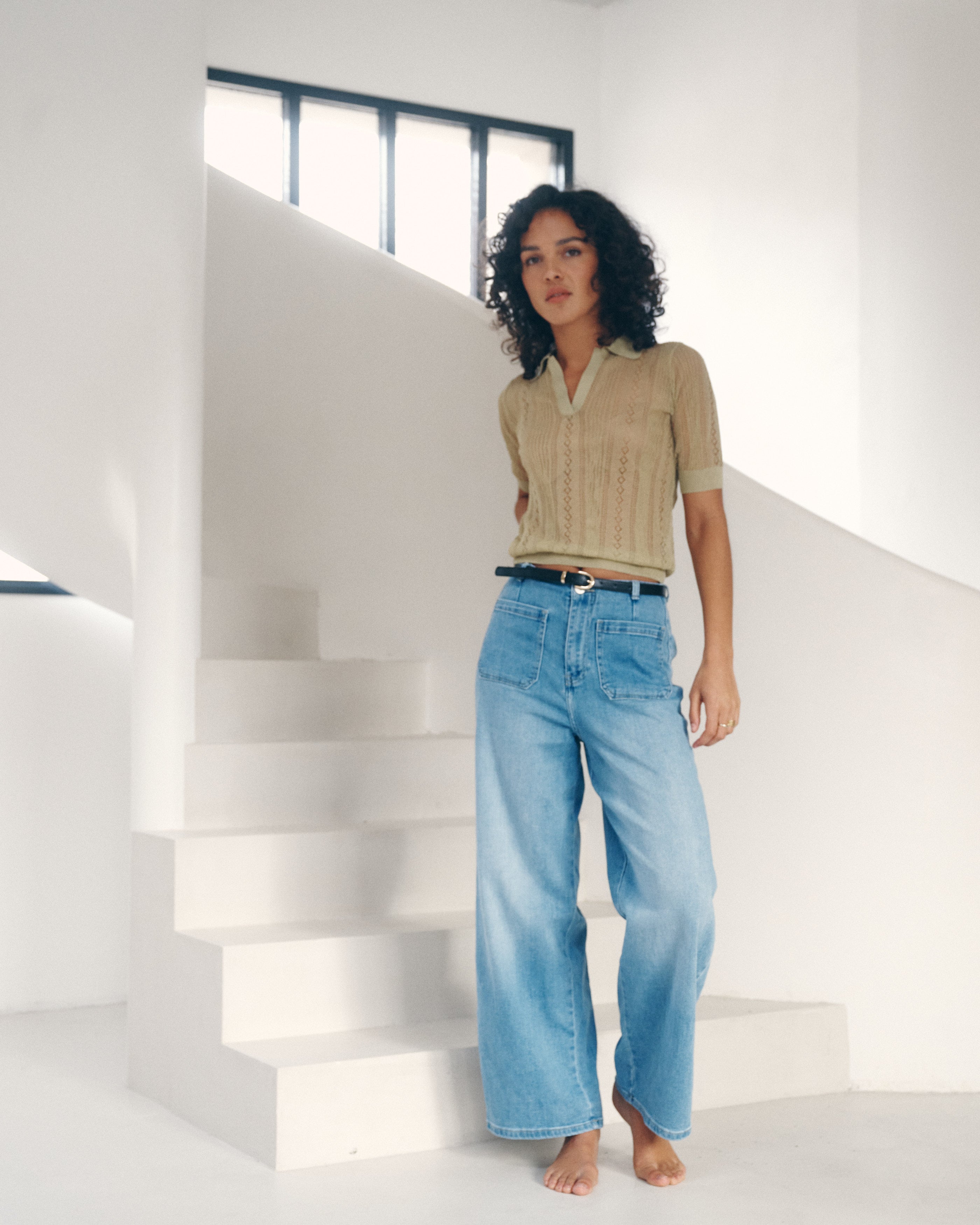 Le jean wide-leg “Nolia” s’inscrit dans l’esthétique élégante et décontractée de la collection Printemps–Été. Sa coupe large et structurée dessine une silhouette fluide, tandis que la taille haute souligne naturellement les lignes. La ceinture fine intégrée, ponctuée d’une boucle dorée, apporte une touche raffinée et contemporaine, signature du modèle. Confectionné dans une matière souple et agréable à porter, Nolia conjugue confort et allure, pour des looks modernes et maîtrisés.