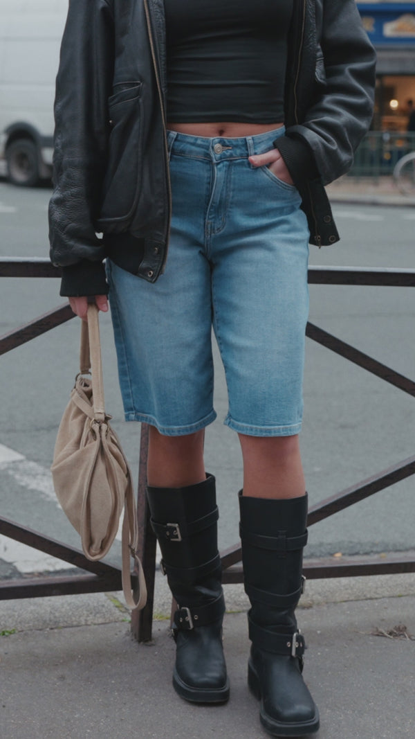 Redécouvrez l’authenticité du denim avec le bermuda baggy-dad. L’iconique coupe Baggy Dad, héritée des années 90, se décline en version jean pour un style brut et sans compromis. Inspiré par l’esthétique grunge et hip-hop, ce bermuda conjugue confort, liberté et attitude. Son volume ample et sa taille mi-haute en font un incontournable du vestiaire, à la fois vintage et indémodable.